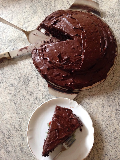 While that scene looked miserable, both for the public humiliation factor and the fact that eating such a big, rich cake all by oneself so quickly must cause some digestive upset, the cake itself always seemed like the pinnacle of an extremely chocolatey chocolate cake.